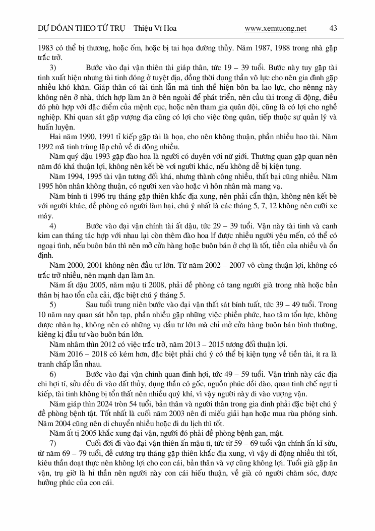 • Tử Vi & Tứ Trụ: Phân tích lá số Tử Vi, luận giải Tứ Trụ (Bát Tự) chi tiết, giúp bạn hiểu rõ về tính cách, vận trình cuộc đời, các giai đoạn thăng trầm và đưa ra định hướng phát triển tốt nhất.
