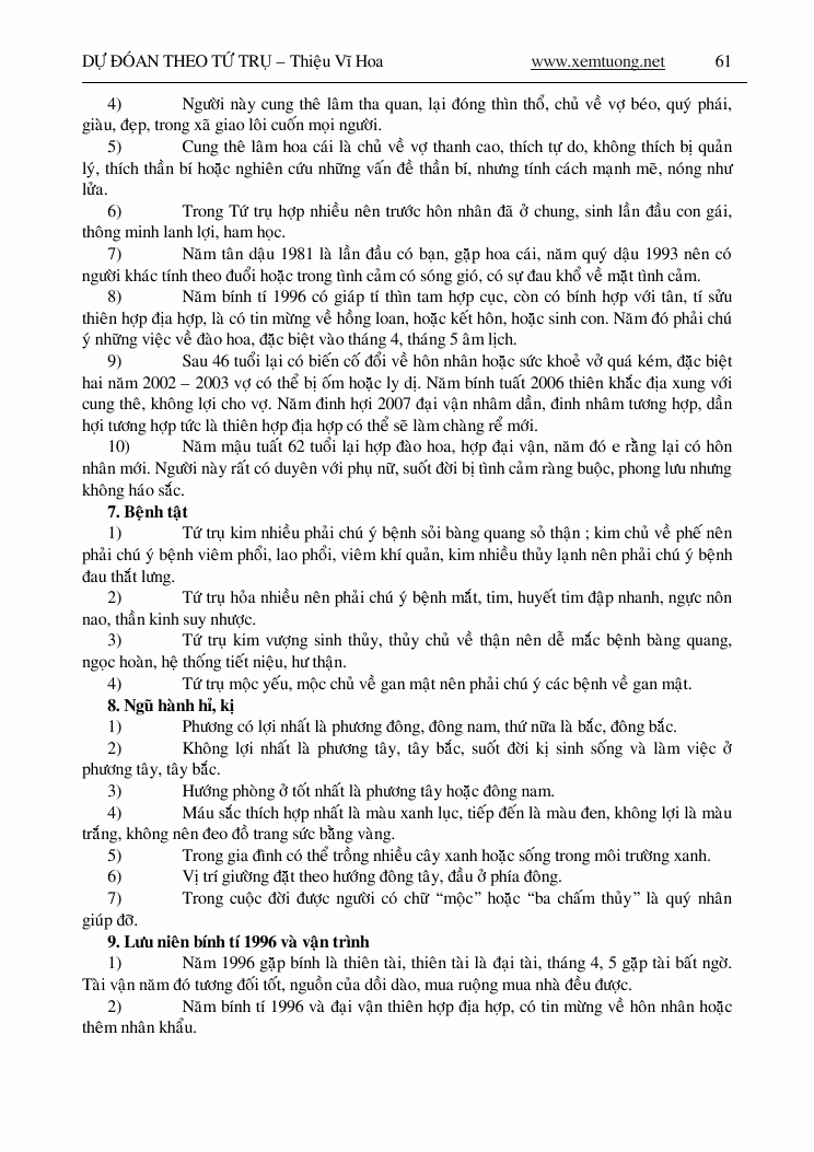 • Tử Vi & Tứ Trụ: Phân tích lá số Tử Vi, luận giải Tứ Trụ (Bát Tự) chi tiết, giúp bạn hiểu rõ về tính cách, vận trình cuộc đời, các giai đoạn thăng trầm và đưa ra định hướng phát triển tốt nhất.