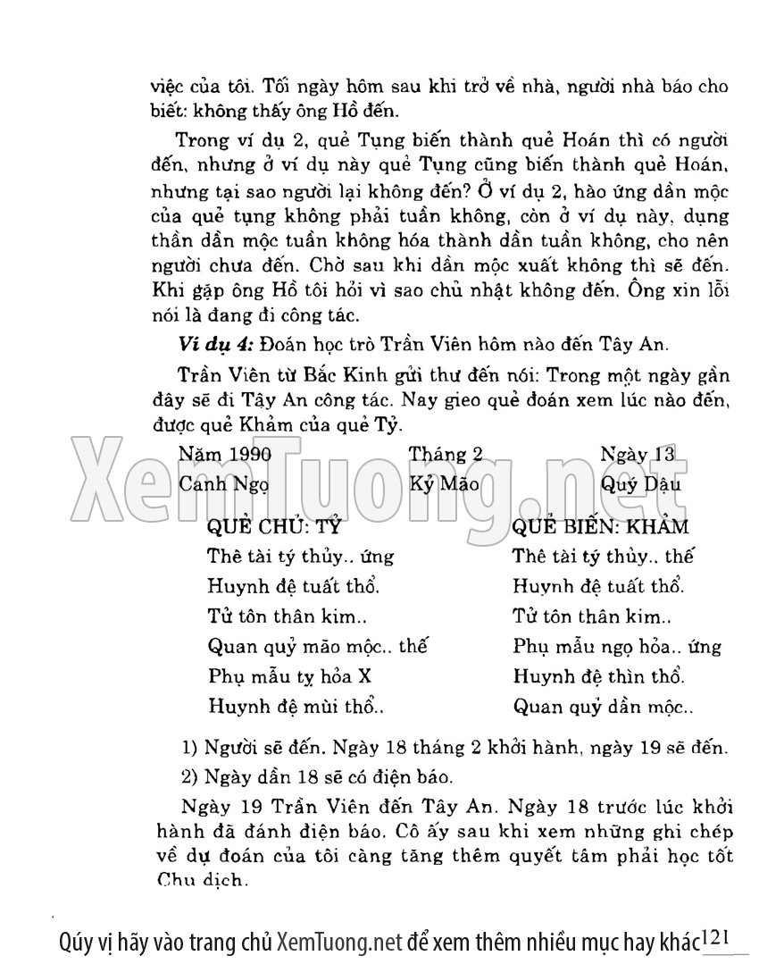 + Sách chủ yếu giới thiệu các ví dụ đoán quẻ tích lũy được trong thực tiễn của tác giả. Trong sách có phương pháp đoán theo tượng quẻ, đoán theo tượng hào và phương pháp đoán kết hợp. Ngoài ra có một số quẻ được chọn lựa từ tinh hoa của các học viên, một số nữa là chọn những quẻ hay, điển hình trong sách cổ. Trong lời giải quẻ luôn thể hiện nhất quán các phương pháp đoán quẻ cơ bản là: “một hào động”, “tượng quẻ”, “dịch lí”, “số lí”, “ngũ hành sinh khắc” và “ngoại ứng”.