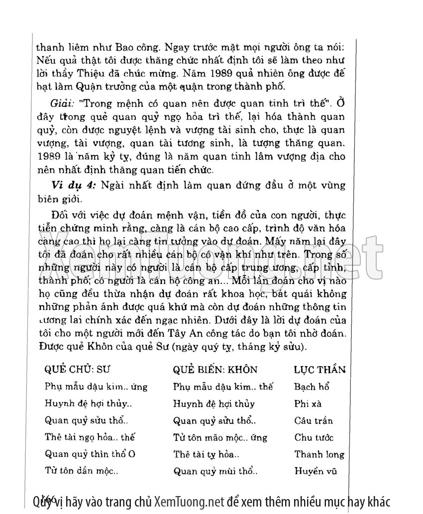 + Sách chủ yếu giới thiệu các ví dụ đoán quẻ tích lũy được trong thực tiễn của tác giả. Trong sách có phương pháp đoán theo tượng quẻ, đoán theo tượng hào và phương pháp đoán kết hợp. Ngoài ra có một số quẻ được chọn lựa từ tinh hoa của các học viên, một số nữa là chọn những quẻ hay, điển hình trong sách cổ. Trong lời giải quẻ luôn thể hiện nhất quán các phương pháp đoán quẻ cơ bản là: “một hào động”, “tượng quẻ”, “dịch lí”, “số lí”, “ngũ hành sinh khắc” và “ngoại ứng”.
