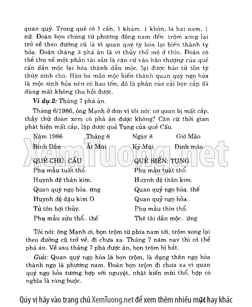 + Sách chủ yếu giới thiệu các ví dụ đoán quẻ tích lũy được trong thực tiễn của tác giả. Trong sách có phương pháp đoán theo tượng quẻ, đoán theo tượng hào và phương pháp đoán kết hợp. Ngoài ra có một số quẻ được chọn lựa từ tinh hoa của các học viên, một số nữa là chọn những quẻ hay, điển hình trong sách cổ. Trong lời giải quẻ luôn thể hiện nhất quán các phương pháp đoán quẻ cơ bản là: “một hào động”, “tượng quẻ”, “dịch lí”, “số lí”, “ngũ hành sinh khắc” và “ngoại ứng”.