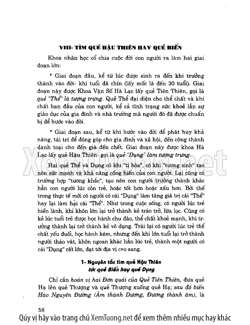 Một ứng dụng quan trọng của Dịch vốn được lưu hành rộng rãi trong dân gian, đó là môn tính số Hà Lạc, để đoán vận con người. Đây là một phương pháp xác suất cổ được nghiên cứu rất công phu dựa trên "Lý thuyết Tượng số" của Dịch học. Cổ nhân tin rằng, con người cũng như vạn vật đều phải tuân theo những quy luật biến dịch chung của Vũ Trụ, giống như các con số. Vì vậy có thể tìm hiểu vận mệnh đời người thông qua “Tượng Nhị Phân” của các con số. Còn các con số tuy sinh ra vô vàn nhưng về cơ bản chỉ có 10 số đếm mà thôi (gồm 5 số sinh và 5 số thành) mà chúng ta đã khảo sát trong bảng Hà Đồ. Khi các con số biến chuyển để tạo ra cái “Dụng” của chúng, thì chúng tuân theo quy luật của “Lạc thư”. Các con số, dù có sinh ra bao nhiêu, cũng không thoát khỏi bốn phương tám hướng của không gian, cũng như không thể ra ngoài Vòng Không Thời Gian của các chu trình Giáp – Tý - Quý Hợi.