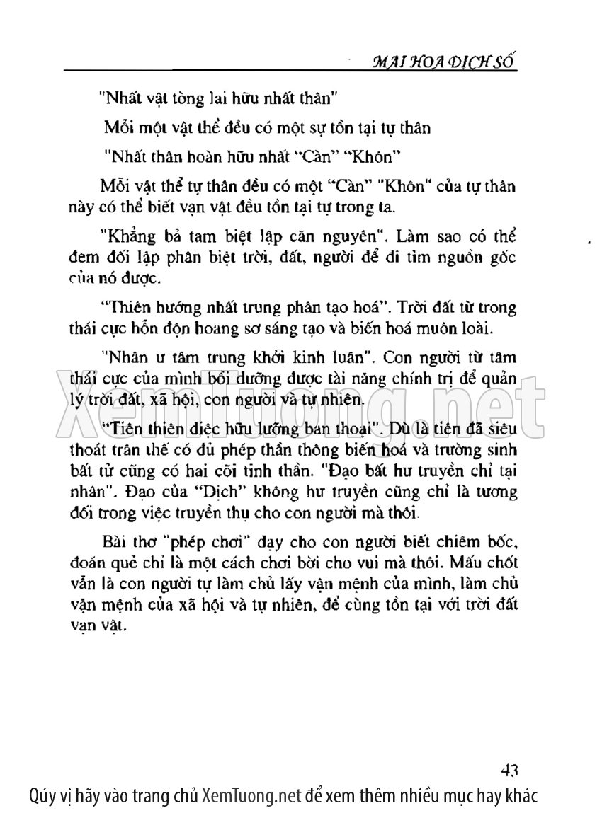 Cuốn sách "Mai Hoa dịch số" được xem là bộ kỳ thư độc đáo trong lịch sử văn hóa Trung Hoa, là viên ngọc quý của khoa chiêm bốc dự đoán học, tương truyền do Thiệu Khang Tiết, nhà đại triết học đời Tống biên soạn. Nền tảng của Mai hoa dịch số là Kinh Dịch, nội dung là các phép gieo quẻ đoán quẻ rất linh hoạt dựa trên tượng số bát quái.