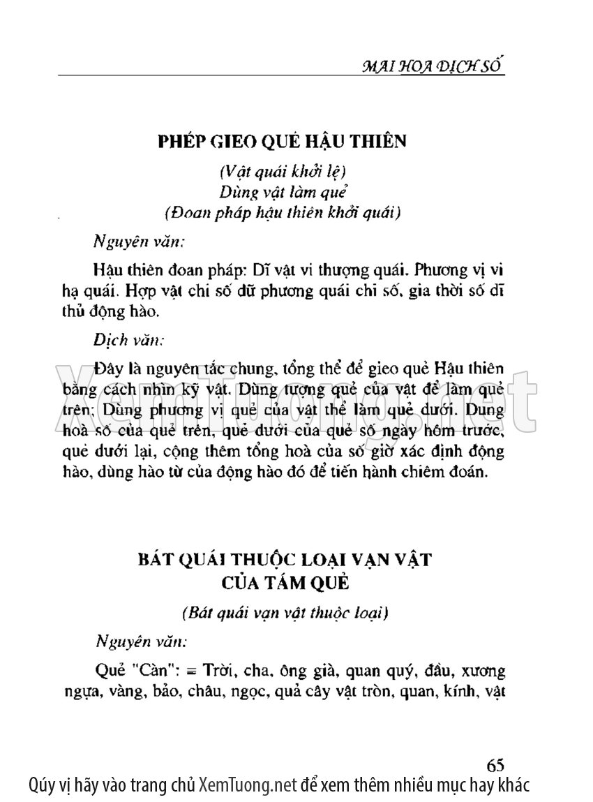 Cuốn sách "Mai Hoa dịch số" được xem là bộ kỳ thư độc đáo trong lịch sử văn hóa Trung Hoa, là viên ngọc quý của khoa chiêm bốc dự đoán học, tương truyền do Thiệu Khang Tiết, nhà đại triết học đời Tống biên soạn. Nền tảng của Mai hoa dịch số là Kinh Dịch, nội dung là các phép gieo quẻ đoán quẻ rất linh hoạt dựa trên tượng số bát quái.