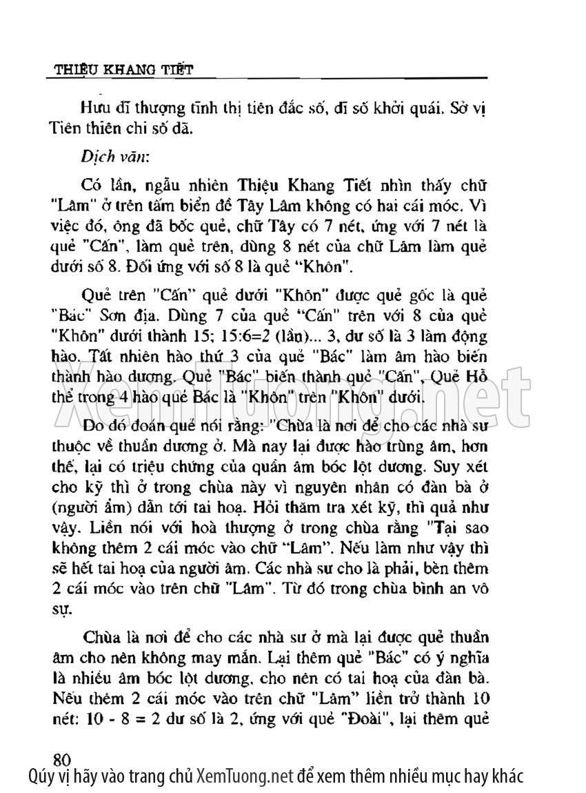 Cuốn sách "Mai Hoa dịch số" được xem là bộ kỳ thư độc đáo trong lịch sử văn hóa Trung Hoa, là viên ngọc quý của khoa chiêm bốc dự đoán học, tương truyền do Thiệu Khang Tiết, nhà đại triết học đời Tống biên soạn. Nền tảng của Mai hoa dịch số là Kinh Dịch, nội dung là các phép gieo quẻ đoán quẻ rất linh hoạt dựa trên tượng số bát quái.