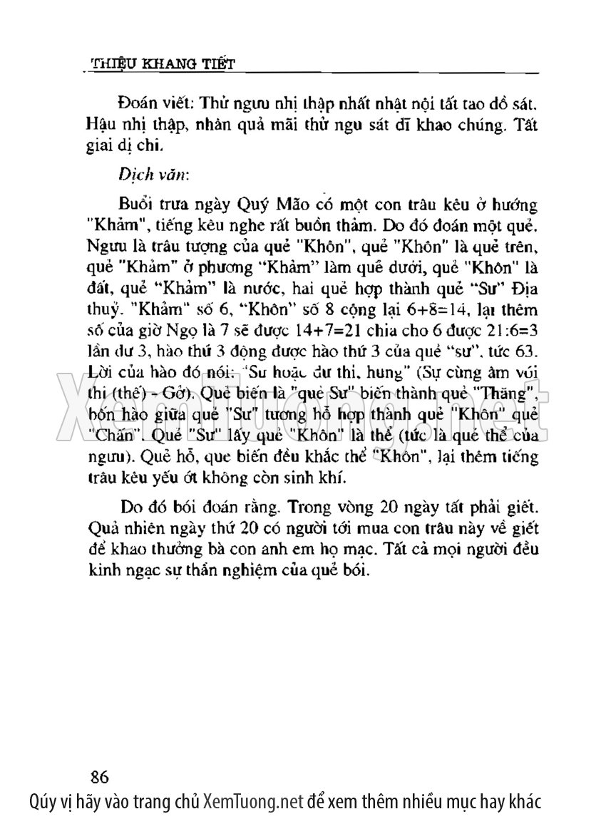 Cuốn sách "Mai Hoa dịch số" được xem là bộ kỳ thư độc đáo trong lịch sử văn hóa Trung Hoa, là viên ngọc quý của khoa chiêm bốc dự đoán học, tương truyền do Thiệu Khang Tiết, nhà đại triết học đời Tống biên soạn. Nền tảng của Mai hoa dịch số là Kinh Dịch, nội dung là các phép gieo quẻ đoán quẻ rất linh hoạt dựa trên tượng số bát quái.