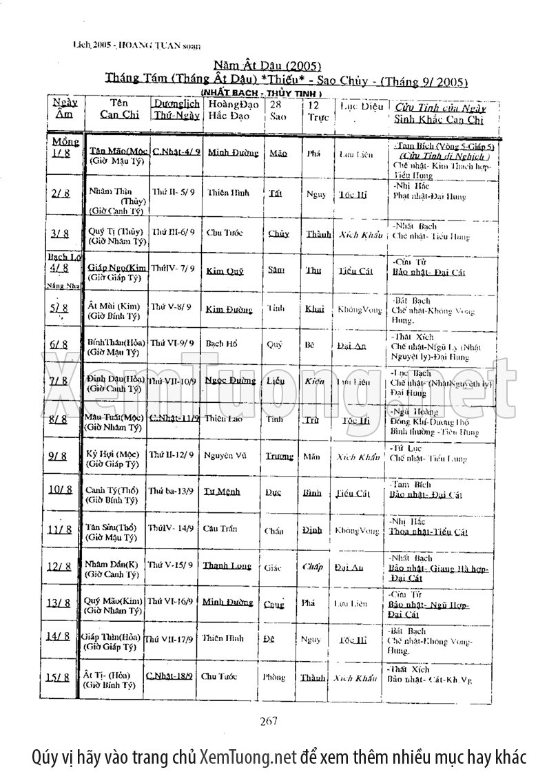 • Xem Ngày Tốt Xấu Vạn Sự: Cung cấp thông tin chính xác về ngày Hoàng đạo, Hắc đạo, giờ tốt xấu (theo các phương pháp cổ truyền như Tam Tông Miếu, Khổng Minh Lục Diệu...) để bạn lựa chọn được thời điểm lý tưởng cho mọi công việc quan trọng.