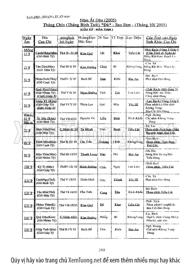 • Xem Ngày Tốt Xấu Vạn Sự: Cung cấp thông tin chính xác về ngày Hoàng đạo, Hắc đạo, giờ tốt xấu (theo các phương pháp cổ truyền như Tam Tông Miếu, Khổng Minh Lục Diệu...) để bạn lựa chọn được thời điểm lý tưởng cho mọi công việc quan trọng.