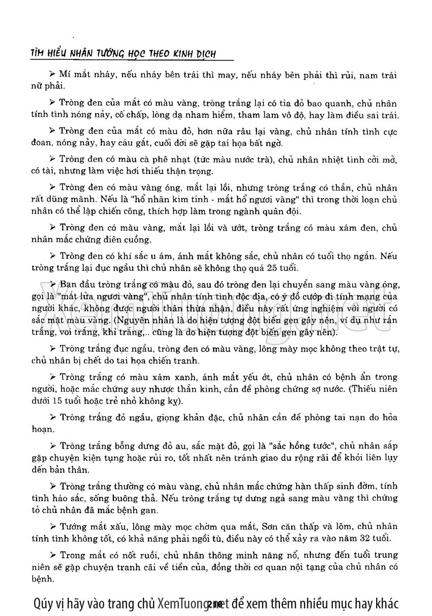 Sách "Tìm hiểu nhân tướng học theo kinh dịch" của tác giả Thiệu Vĩ Hoa cho chúng ta một cách nhìn toàn diễn về bản chất của thuật nhân tướng. Hầu hết chúng ta khi nói đến tướng thuật đều nghĩ đến khuôn mặt. Tuy nhiên như vậy có nghĩa là chỉ quan tâm đến phần hình dạng bên ngoài mà chưa chú trọng đến bản chất bên trong của thuật nhân tướng. Tướng thuật là nhìn tướng một người mà đoán được tuổi thọ, tài lộc, vận hạn... của họ, thậm chí của tổ tiên, cha mẹ, anh chị em trong gia đình người đó.