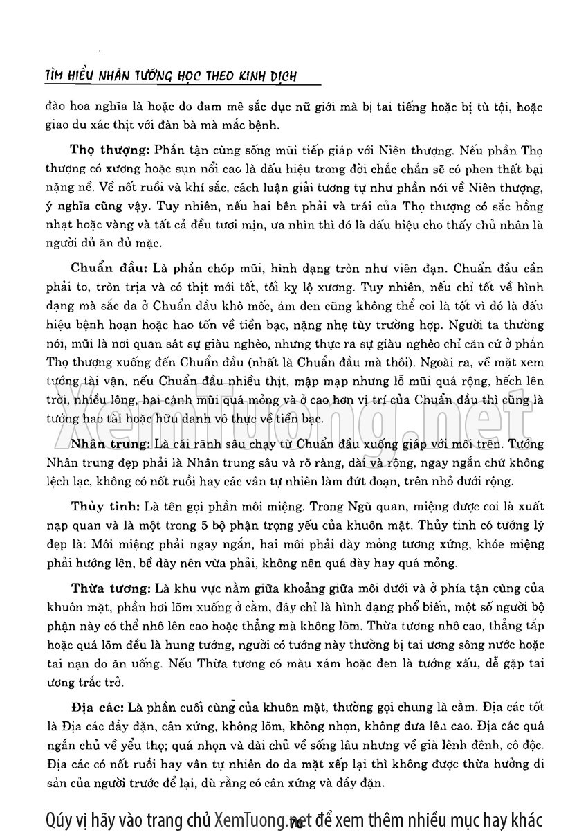 Sách "Tìm hiểu nhân tướng học theo kinh dịch" của tác giả Thiệu Vĩ Hoa cho chúng ta một cách nhìn toàn diễn về bản chất của thuật nhân tướng. Hầu hết chúng ta khi nói đến tướng thuật đều nghĩ đến khuôn mặt. Tuy nhiên như vậy có nghĩa là chỉ quan tâm đến phần hình dạng bên ngoài mà chưa chú trọng đến bản chất bên trong của thuật nhân tướng. Tướng thuật là nhìn tướng một người mà đoán được tuổi thọ, tài lộc, vận hạn... của họ, thậm chí của tổ tiên, cha mẹ, anh chị em trong gia đình người đó.