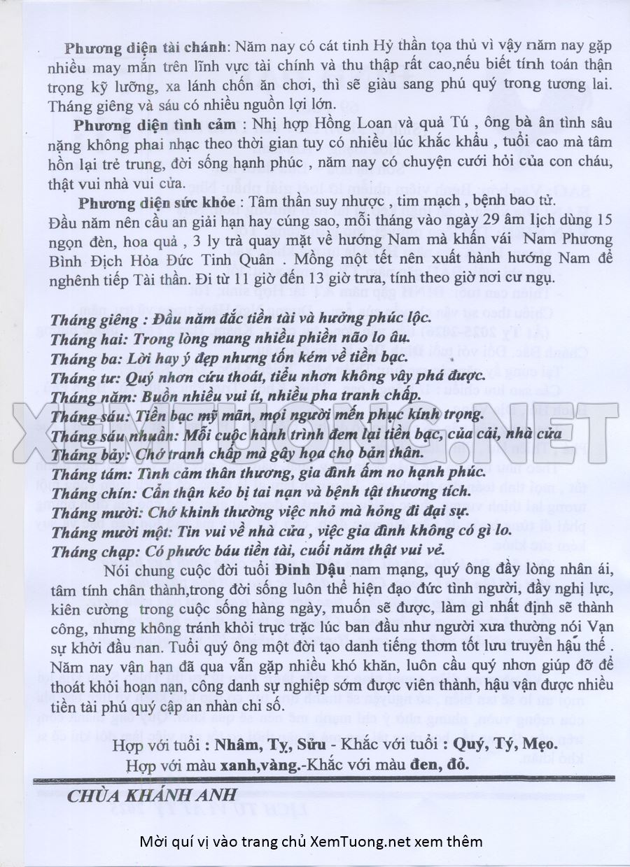 Tử Vi Năm Ất Tỵ 2025 mạng nam ĐINH DẬU