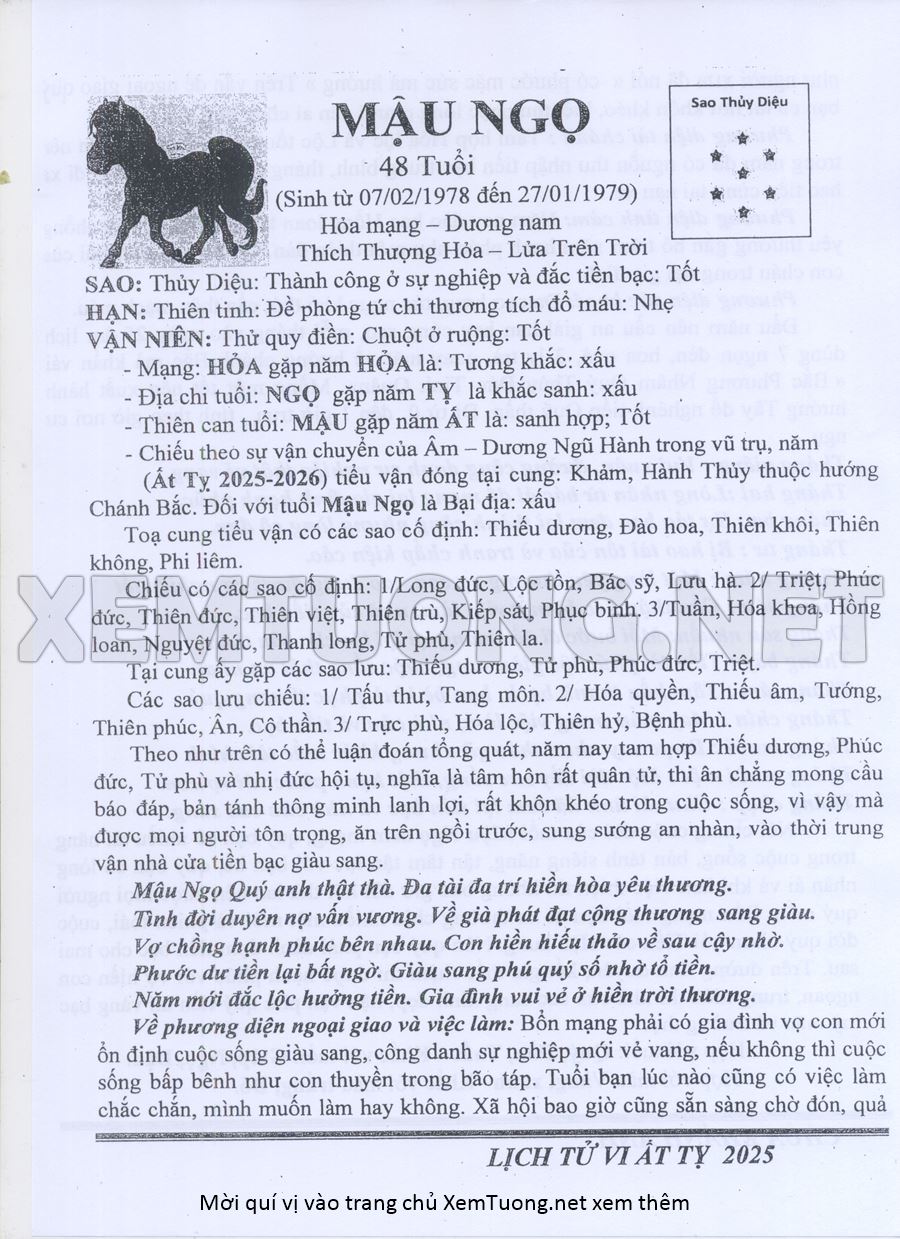 Tử Vi Năm Ất Tỵ 2025 mạng nam MẬU NGỌ