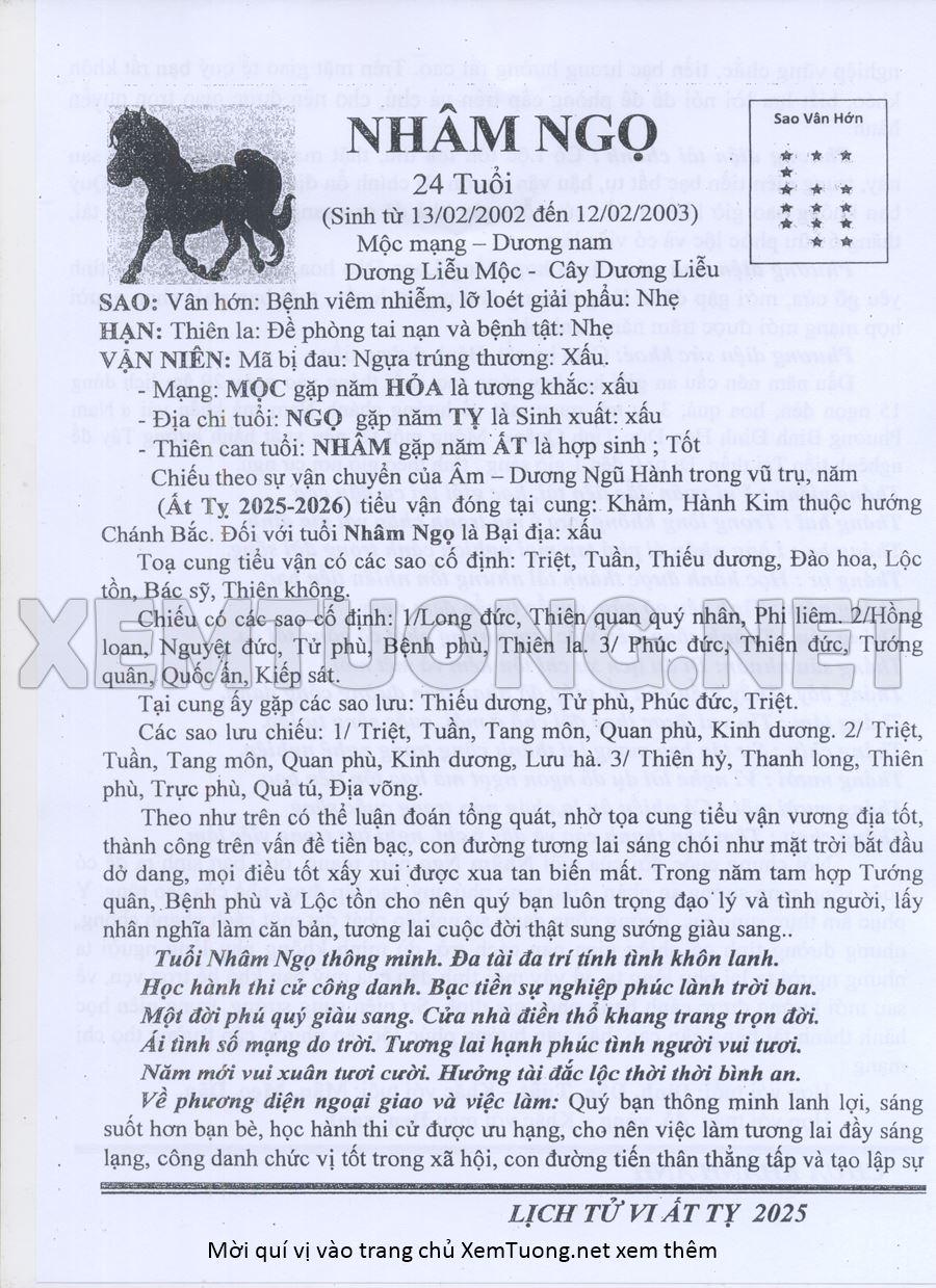 Tử Vi Năm Ất Tỵ 2025 mạng nam NHÂM NGỌ