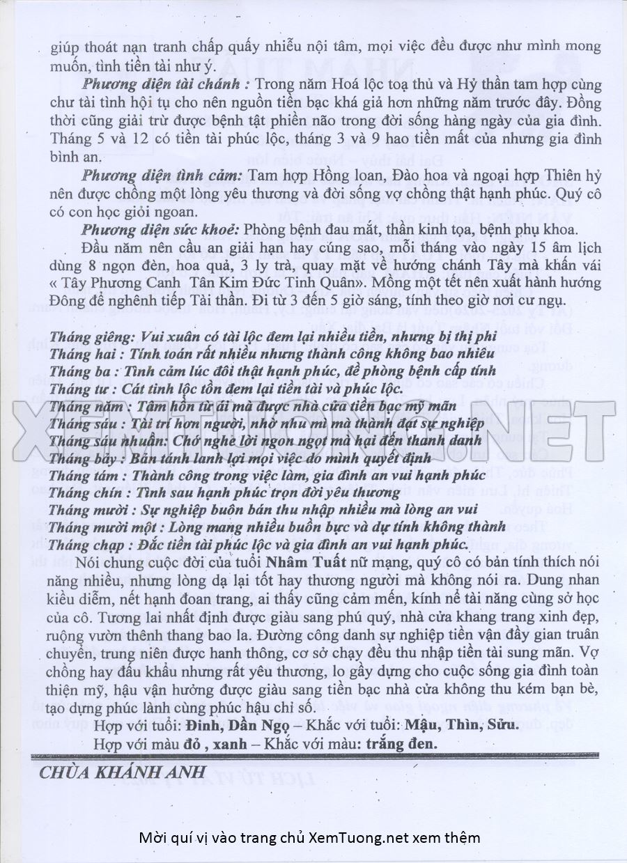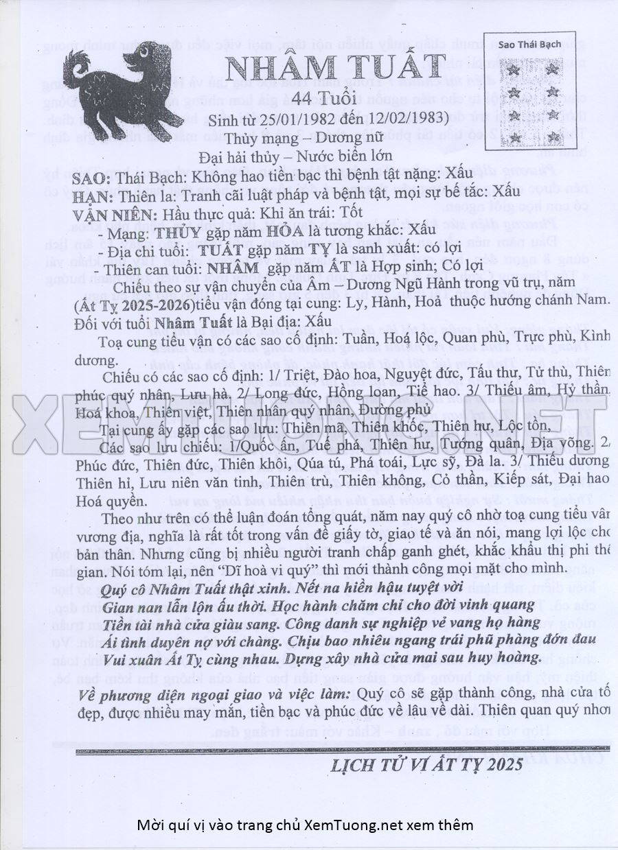 Tử Vi Năm Ất Tỵ 2025 mạng nữ NHÂM TUẤT