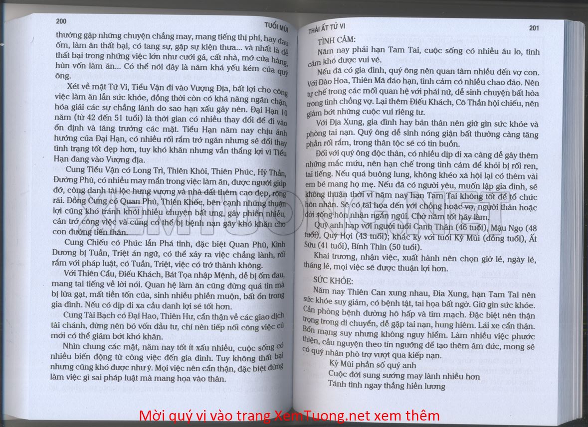 (Lưu ý: Thái Ất Tử Vi được chúng tôi scan từ sách, do đó mỗi tuổi sẽ có nhiều trang, quý vị xem xong hãy nhấn vào trang tiếp theo để xem hết phần tuổi muốn xem. Nếu quý vị xem bằng điện thoại thì hãy kéo qua lại để xem phần bị khuất.)
