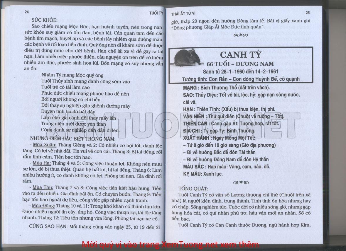 (Lưu ý: Thái Ất Tử Vi được chúng tôi scan từ sách, do đó mỗi tuổi sẽ có nhiều trang, quý vị xem xong hãy nhấn vào trang tiếp theo để xem hết phần tuổi muốn xem. Nếu quý vị xem bằng điện thoại thì hãy kéo qua lại để xem phần bị khuất.)