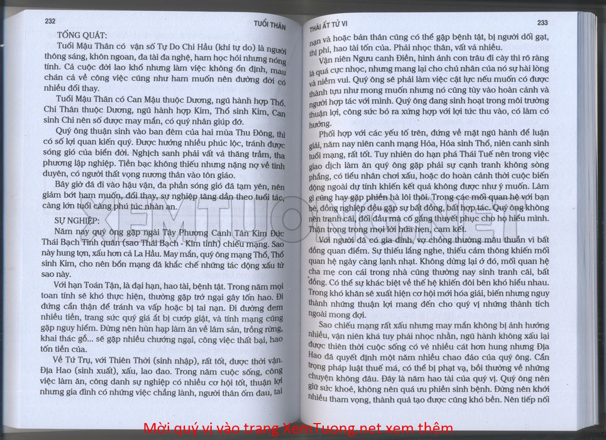 (Lưu ý: Thái Ất Tử Vi được chúng tôi scan từ sách, do đó mỗi tuổi sẽ có nhiều trang, quý vị xem xong hãy nhấn vào trang tiếp theo để xem hết phần tuổi muốn xem. Nếu quý vị xem bằng điện thoại thì hãy kéo qua lại để xem phần bị khuất.)