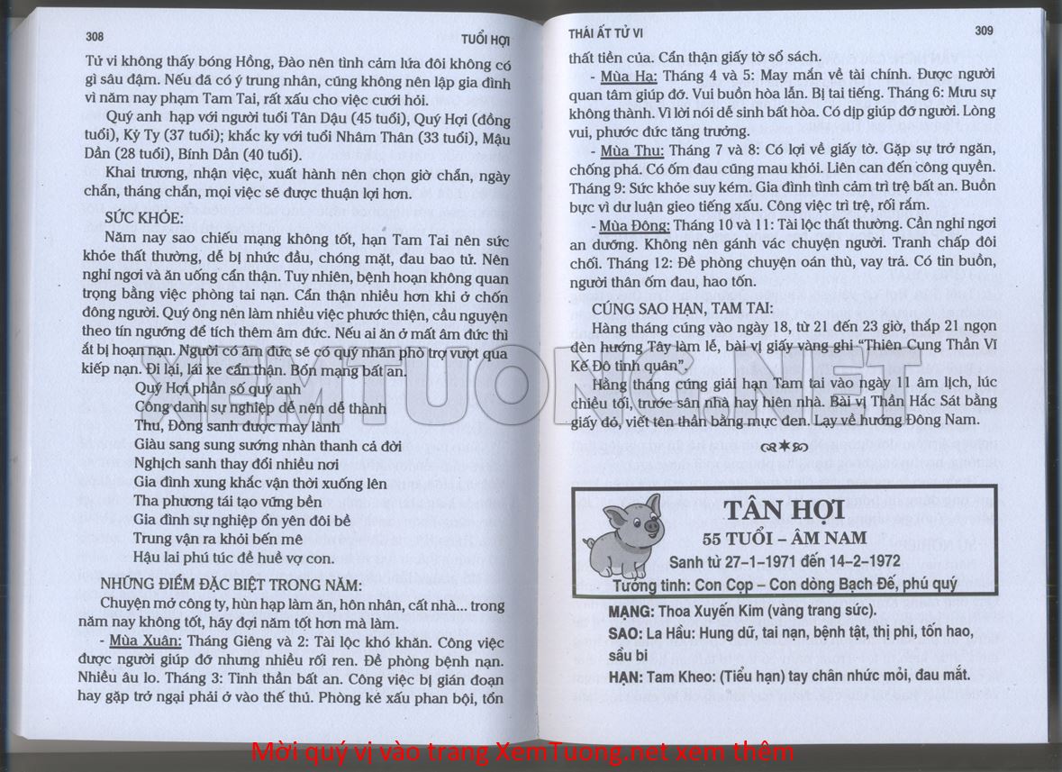 (Lưu ý: Thái Ất Tử Vi được chúng tôi scan từ sách, do đó mỗi tuổi sẽ có nhiều trang, quý vị xem xong hãy nhấn vào trang tiếp theo để xem hết phần tuổi muốn xem. Nếu quý vị xem bằng điện thoại thì hãy kéo qua lại để xem phần bị khuất.)