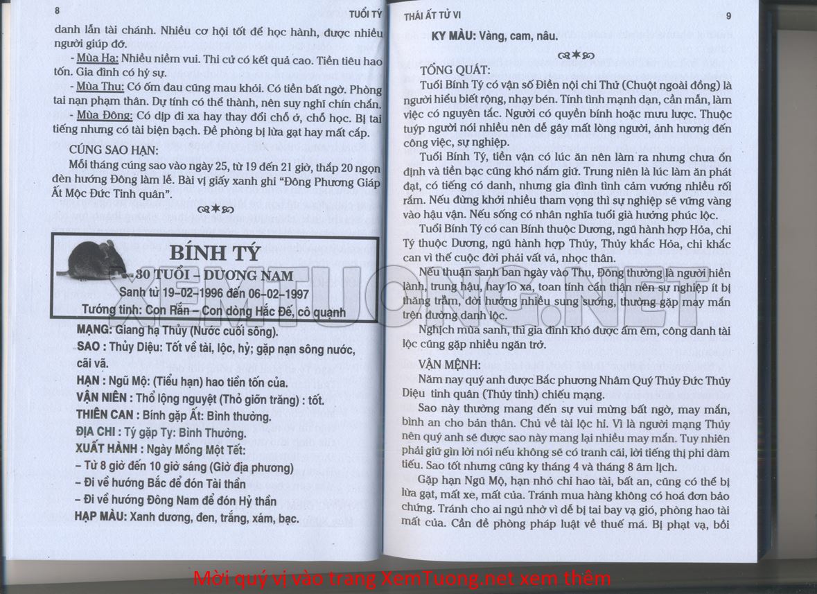 (Lưu ý: Thái Ất Tử Vi được chúng tôi scan từ sách, do đó mỗi tuổi sẽ có nhiều trang, quý vị xem xong hãy nhấn vào trang tiếp theo để xem hết phần tuổi muốn xem. Nếu quý vị xem bằng điện thoại thì hãy kéo qua lại để xem phần bị khuất.)