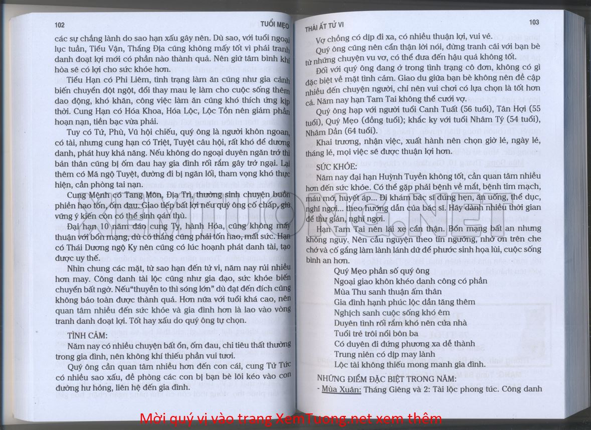 (Lưu ý: Thái Ất Tử Vi được chúng tôi scan từ sách, do đó mỗi tuổi sẽ có nhiều trang, quý vị xem xong hãy nhấn vào trang tiếp theo để xem hết phần tuổi muốn xem. Nếu quý vị xem bằng điện thoại thì hãy kéo qua lại để xem phần bị khuất.)