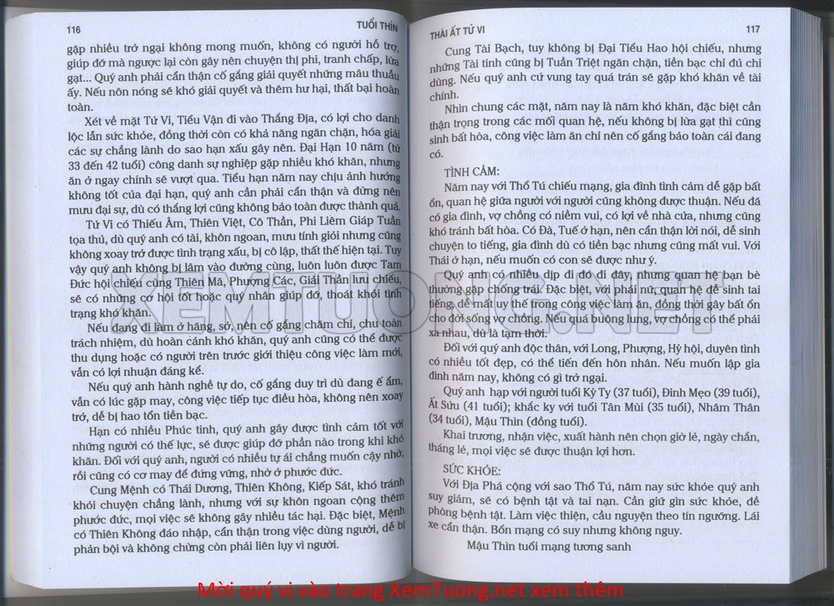 (Lưu ý: Thái Ất Tử Vi được chúng tôi scan từ sách, do đó mỗi tuổi sẽ có nhiều trang, quý vị xem xong hãy nhấn vào trang tiếp theo để xem hết phần tuổi muốn xem. Nếu quý vị xem bằng điện thoại thì hãy kéo qua lại để xem phần bị khuất.)