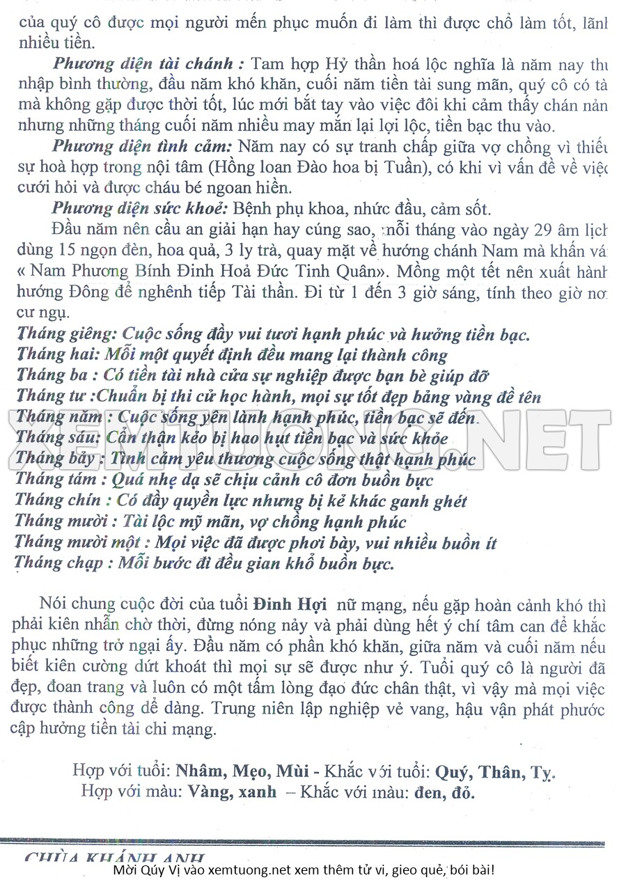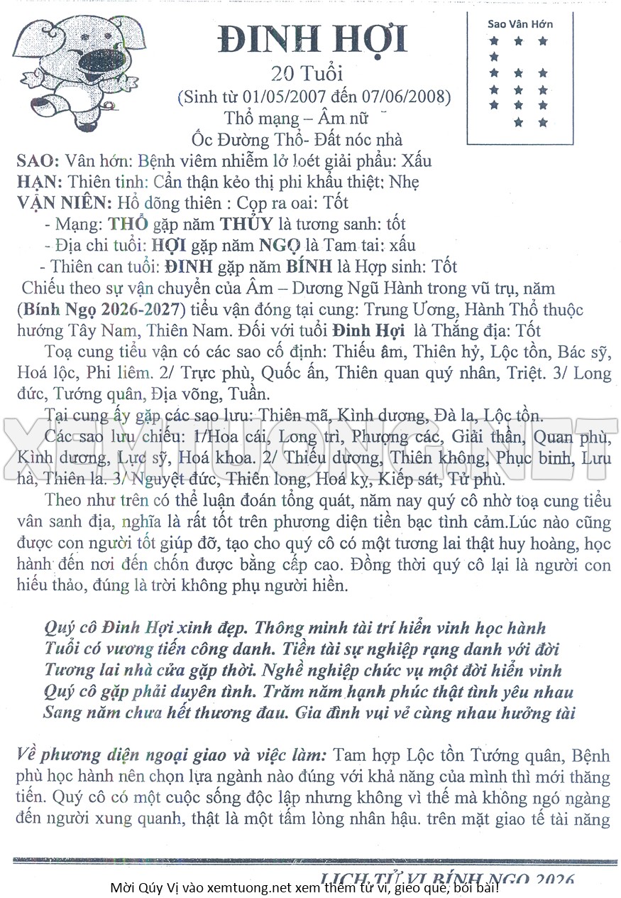 Tử Vi Năm Bính Ngọ 2026 mạng nữ ĐINH HỢI