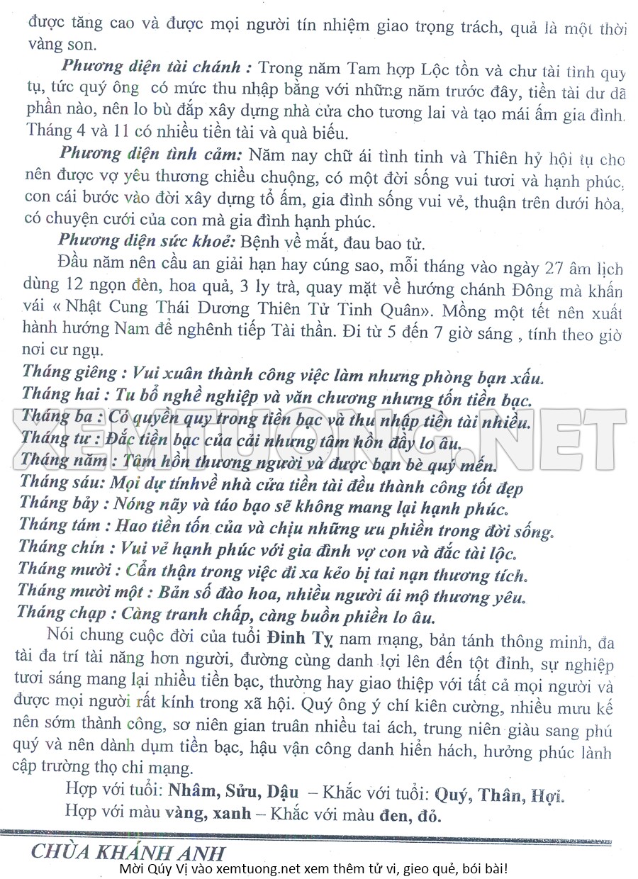 Tử Vi Năm Bính Ngọ 2026 mạng nam ĐINH TỴ