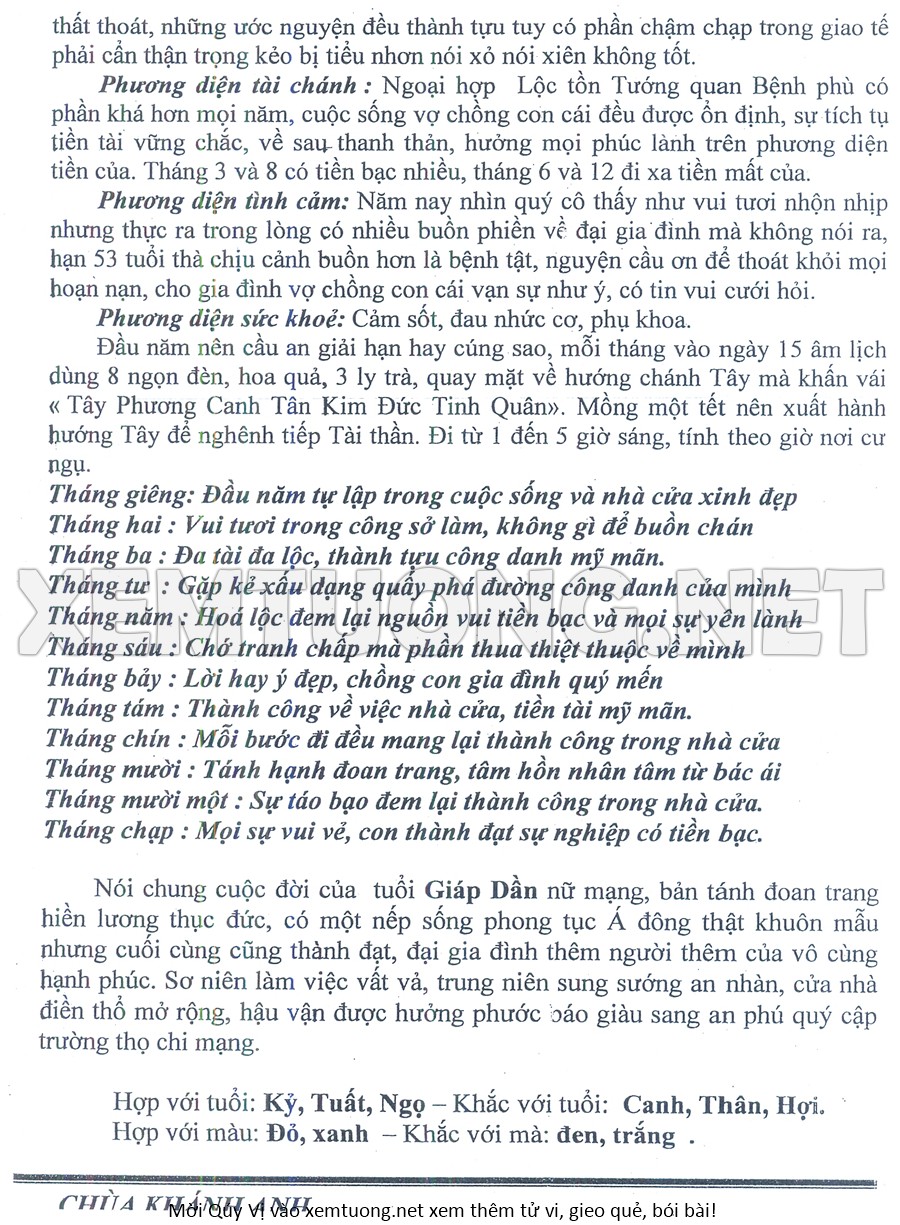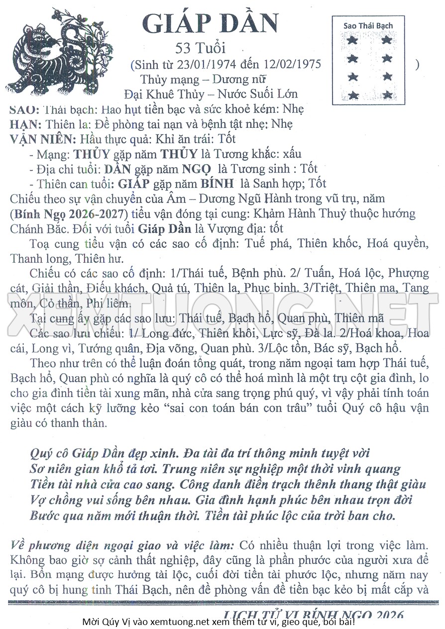 Tử Vi Năm Bính Ngọ 2026 mạng nữ GIÁP DẦN