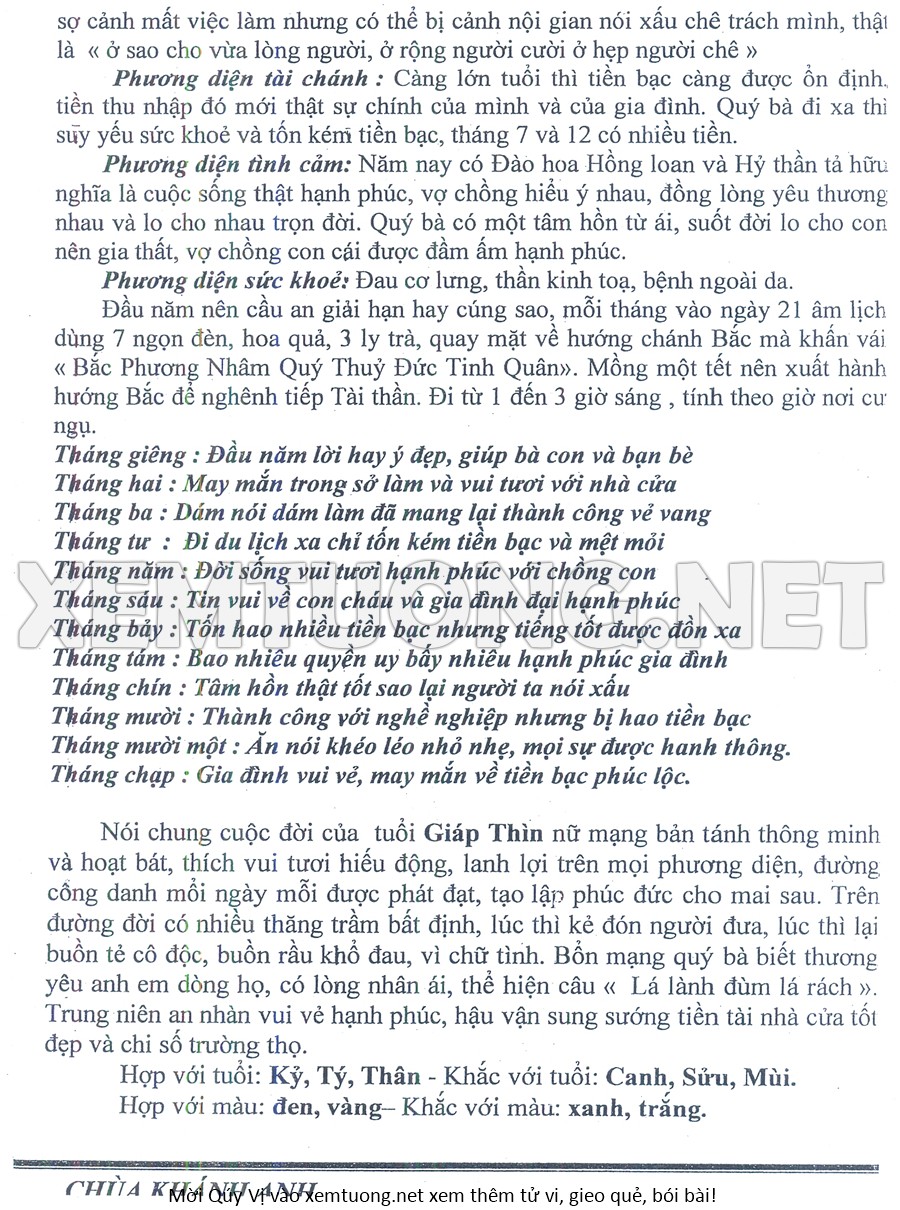 Tử Vi Năm Bính Ngọ 2026 mạng nữ GIÁP THÌN
