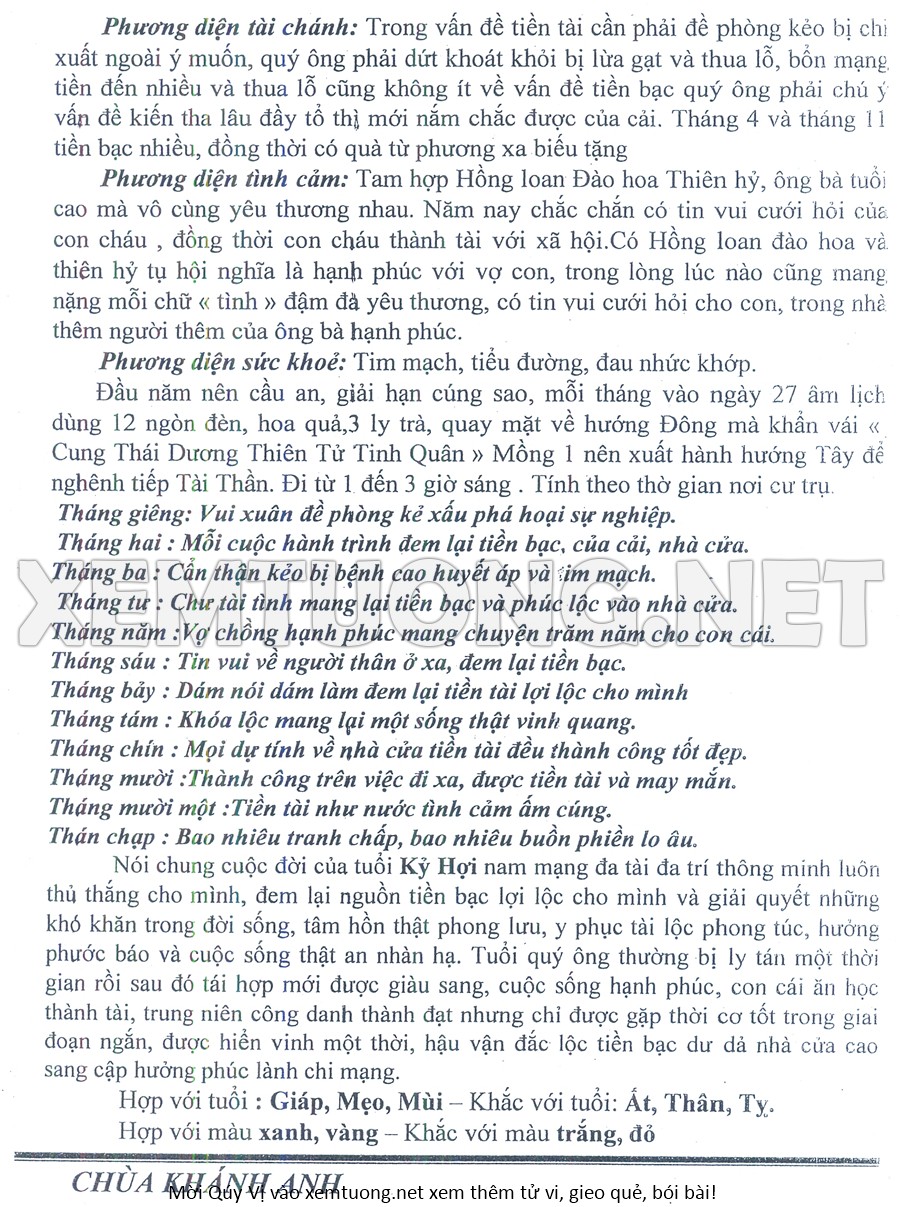 Tử Vi Năm Bính Ngọ 2026 mạng nam KỶ HỢI