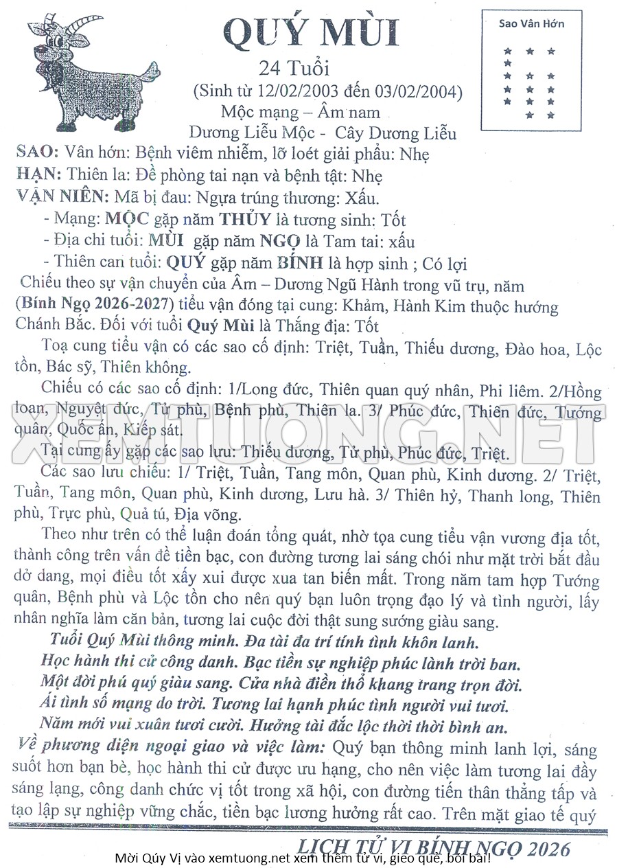 Tử Vi Năm Bính Ngọ 2026 mạng nam Qúy Mùi
