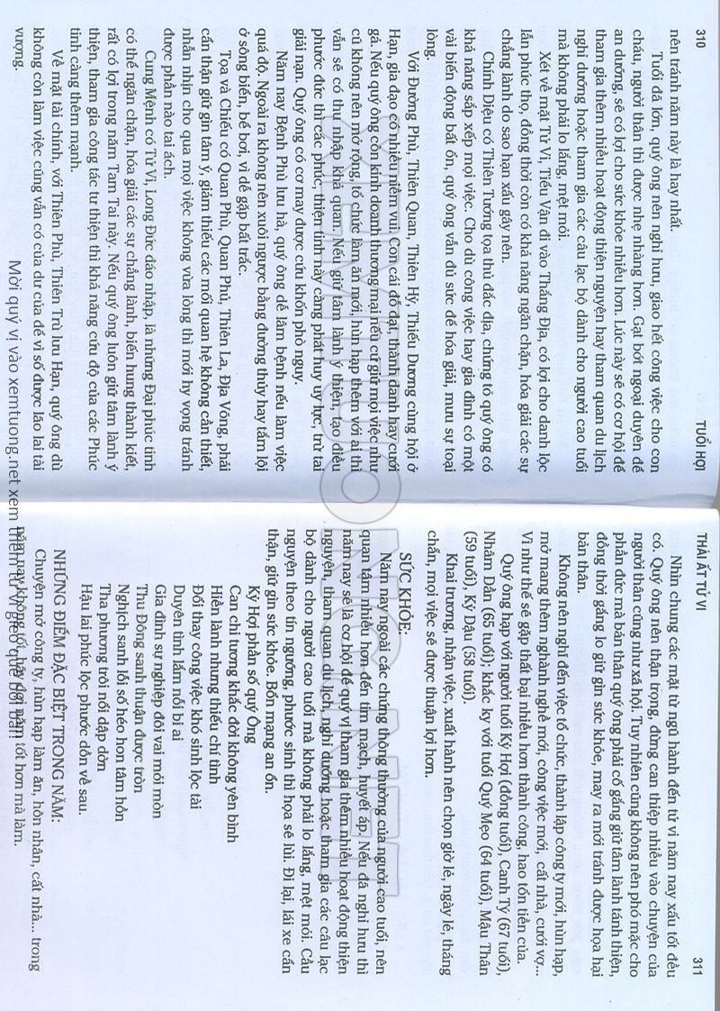 (Lưu ý: Thái Ất Tử Vi được chúng tôi scan từ sách, do đó mỗi tuổi sẽ có nhiều trang, quý vị xem xong hãy nhấn vào trang tiếp theo để xem hết phần tuổi muốn xem. Nếu quý vị xem bằng điện thoại thì hãy kéo qua lại để xem phần bị khuất.)