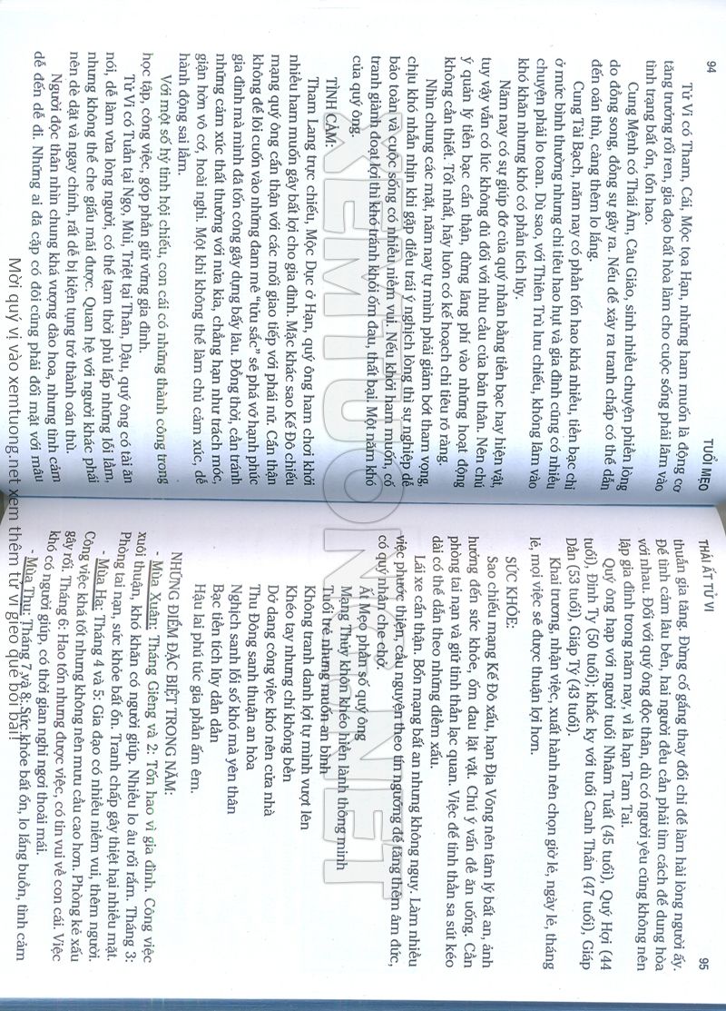 (Lưu ý: Thái Ất Tử Vi được chúng tôi scan từ sách, do đó mỗi tuổi sẽ có nhiều trang, quý vị xem xong hãy nhấn vào trang tiếp theo để xem hết phần tuổi muốn xem. Nếu quý vị xem bằng điện thoại thì hãy kéo qua lại để xem phần bị khuất.)