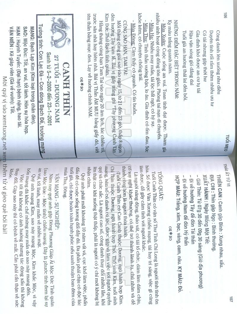 (Lưu ý: Thái Ất Tử Vi được chúng tôi scan từ sách, do đó mỗi tuổi sẽ có nhiều trang, quý vị xem xong hãy nhấn vào trang tiếp theo để xem hết phần tuổi muốn xem. Nếu quý vị xem bằng điện thoại thì hãy kéo qua lại để xem phần bị khuất.)