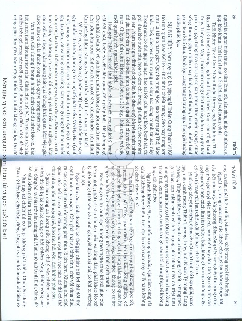 (Lưu ý: Thái Ất Tử Vi được chúng tôi scan từ sách, do đó mỗi tuổi sẽ có nhiều trang, quý vị xem xong hãy nhấn vào trang tiếp theo để xem hết phần tuổi muốn xem. Nếu quý vị xem bằng điện thoại thì hãy kéo qua lại để xem phần bị khuất.)