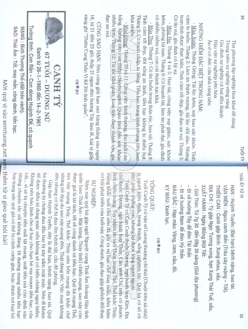 (Lưu ý: Thái Ất Tử Vi được chúng tôi scan từ sách, do đó mỗi tuổi sẽ có nhiều trang, quý vị xem xong hãy nhấn vào trang tiếp theo để xem hết phần tuổi muốn xem. Nếu quý vị xem bằng điện thoại thì hãy kéo qua lại để xem phần bị khuất.)