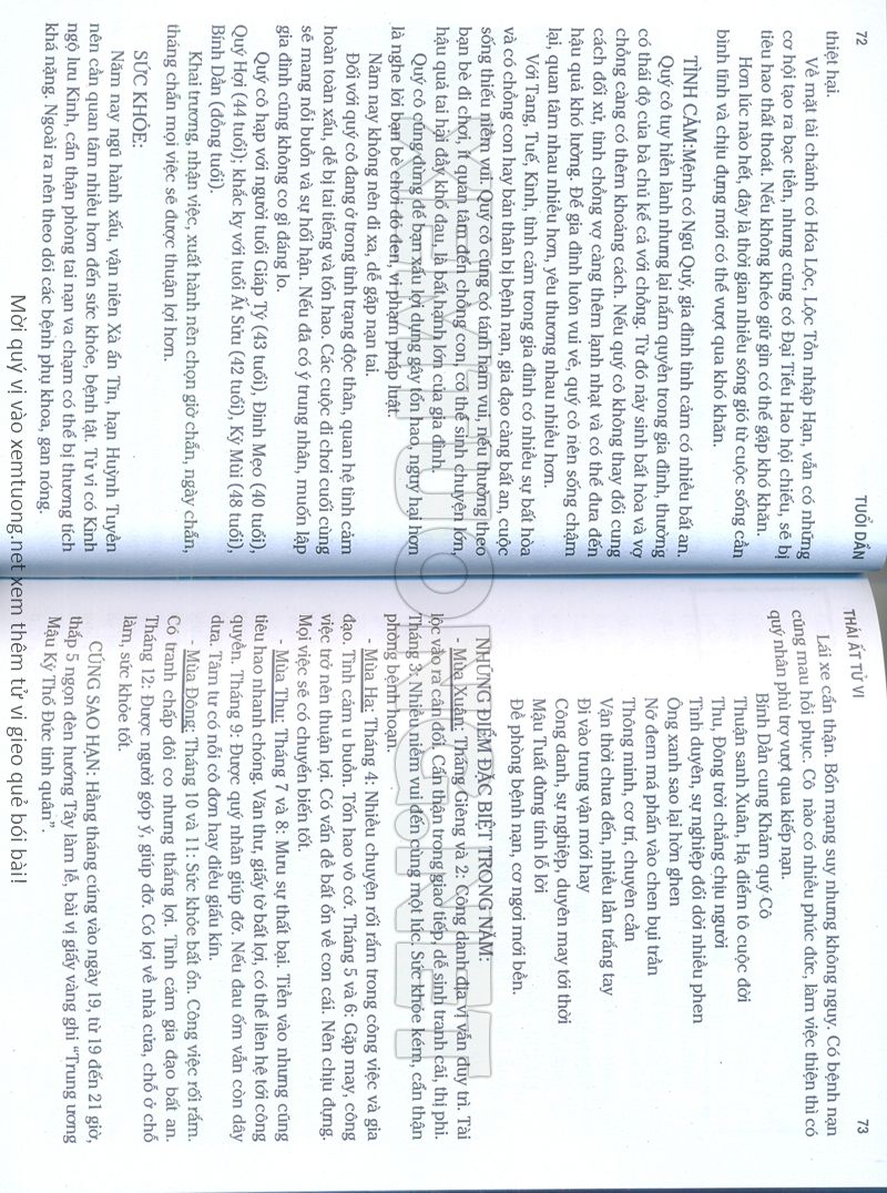 (Lưu ý: Thái Ất Tử Vi được chúng tôi scan từ sách, do đó mỗi tuổi sẽ có nhiều trang, quý vị xem xong hãy nhấn vào trang tiếp theo để xem hết phần tuổi muốn xem. Nếu quý vị xem bằng điện thoại thì hãy kéo qua lại để xem phần bị khuất.)