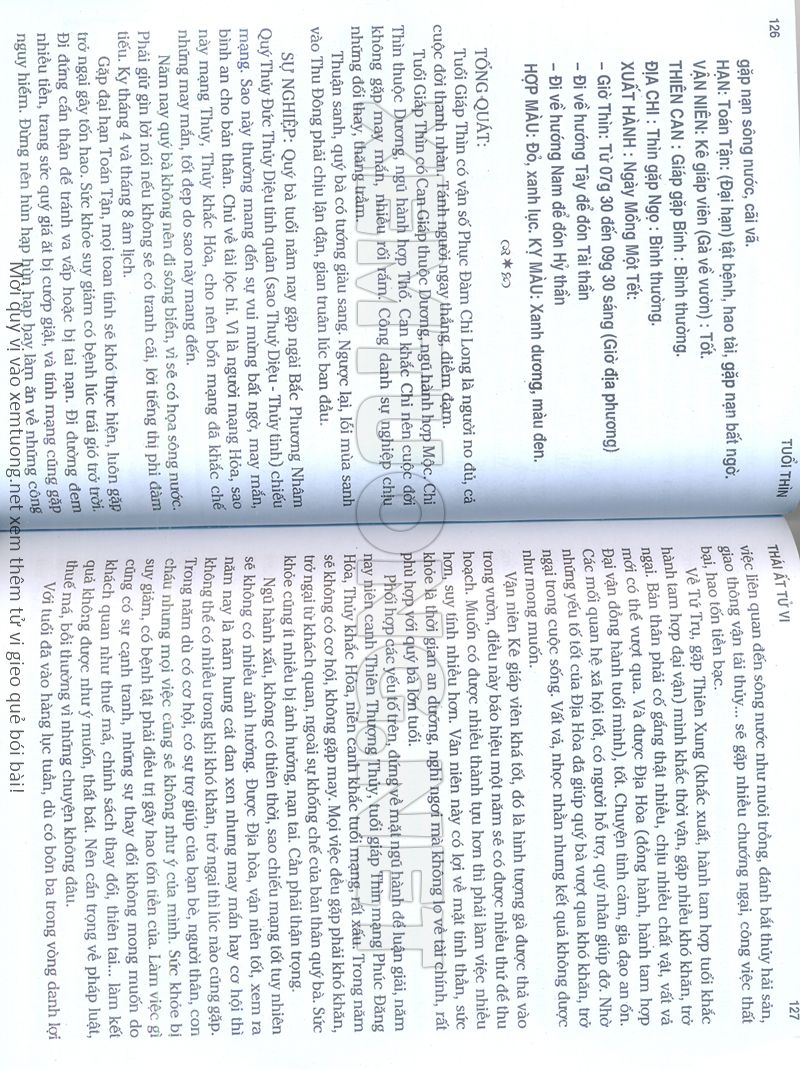 (Lưu ý: Thái Ất Tử Vi được chúng tôi scan từ sách, do đó mỗi tuổi sẽ có nhiều trang, quý vị xem xong hãy nhấn vào trang tiếp theo để xem hết phần tuổi muốn xem. Nếu quý vị xem bằng điện thoại thì hãy kéo qua lại để xem phần bị khuất.)